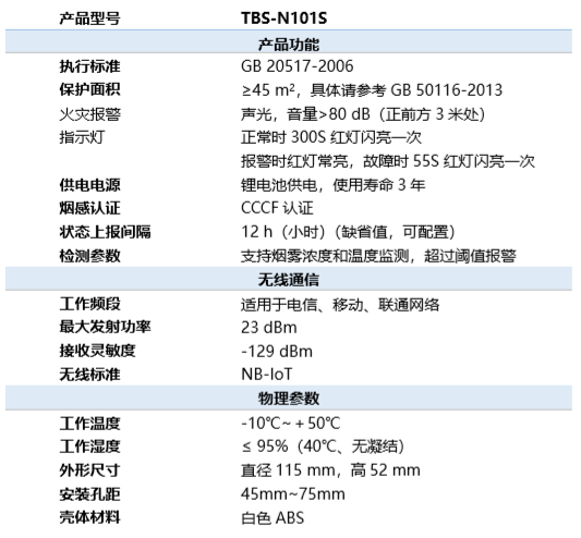 为进一步满足市场多样化需求,优化消防解决方案,征途国际pg科技NB-IoT新品烟感TBS-N101S正式投放市场。 TBS-N101S是独立式无线感烟报警器,基于NB-IoT标准,具备远距离无线通信能力,无需布线、即买即用;可同时检测烟雾浓度和温度,提升检测准确率;采用新方案设计,有效确保产品电池使用寿命更长;支持声光、电话、短信、平台等多种报警方式,有效预防火灾发生。